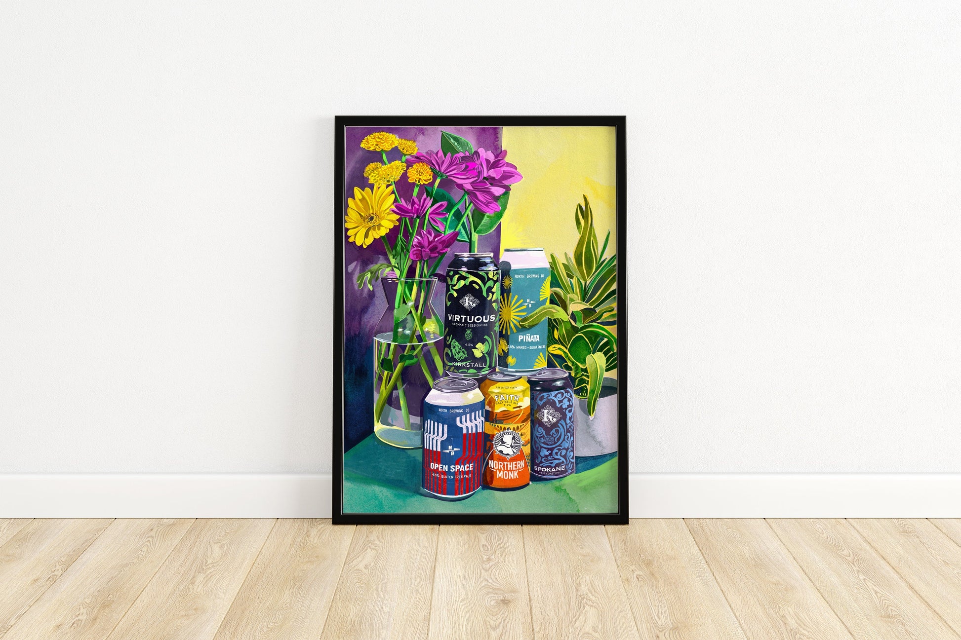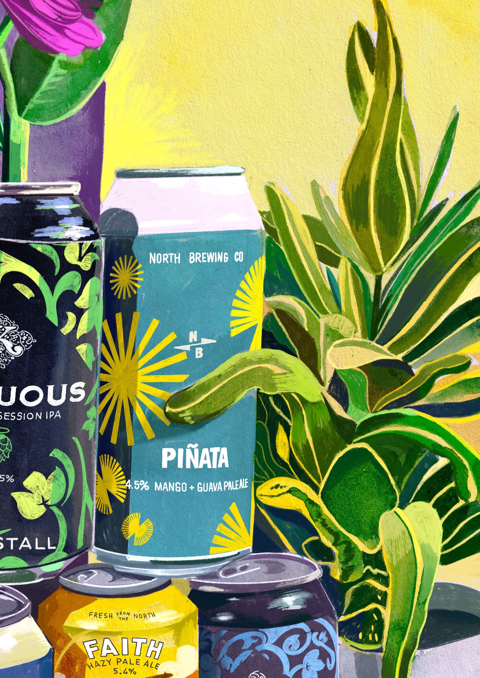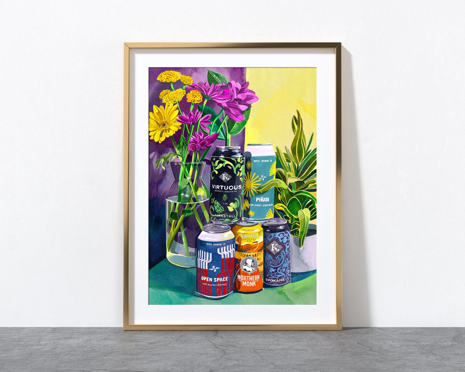 This illustrated artwork print makes a great gift for any craft beer aficionado, anyone with enthusiasm for Leeds pubs and breweries or simply because you enjoy vibrant colours, plants, flowers and cans.