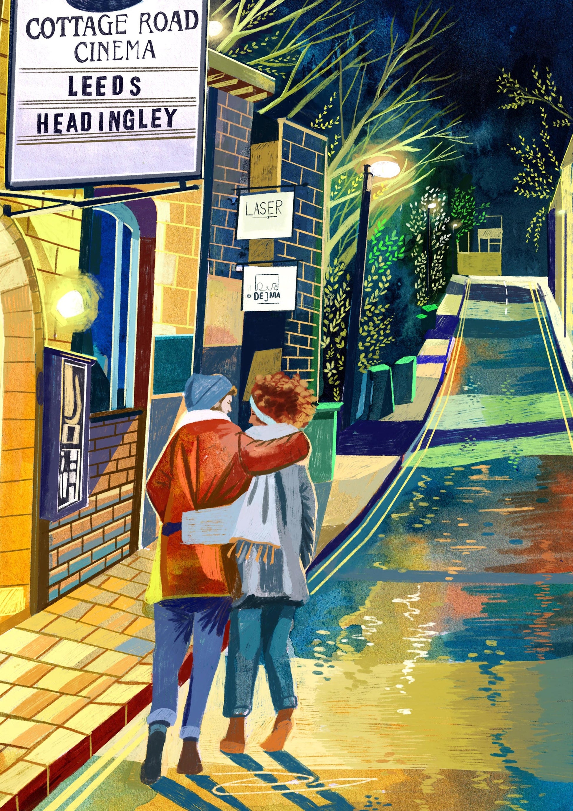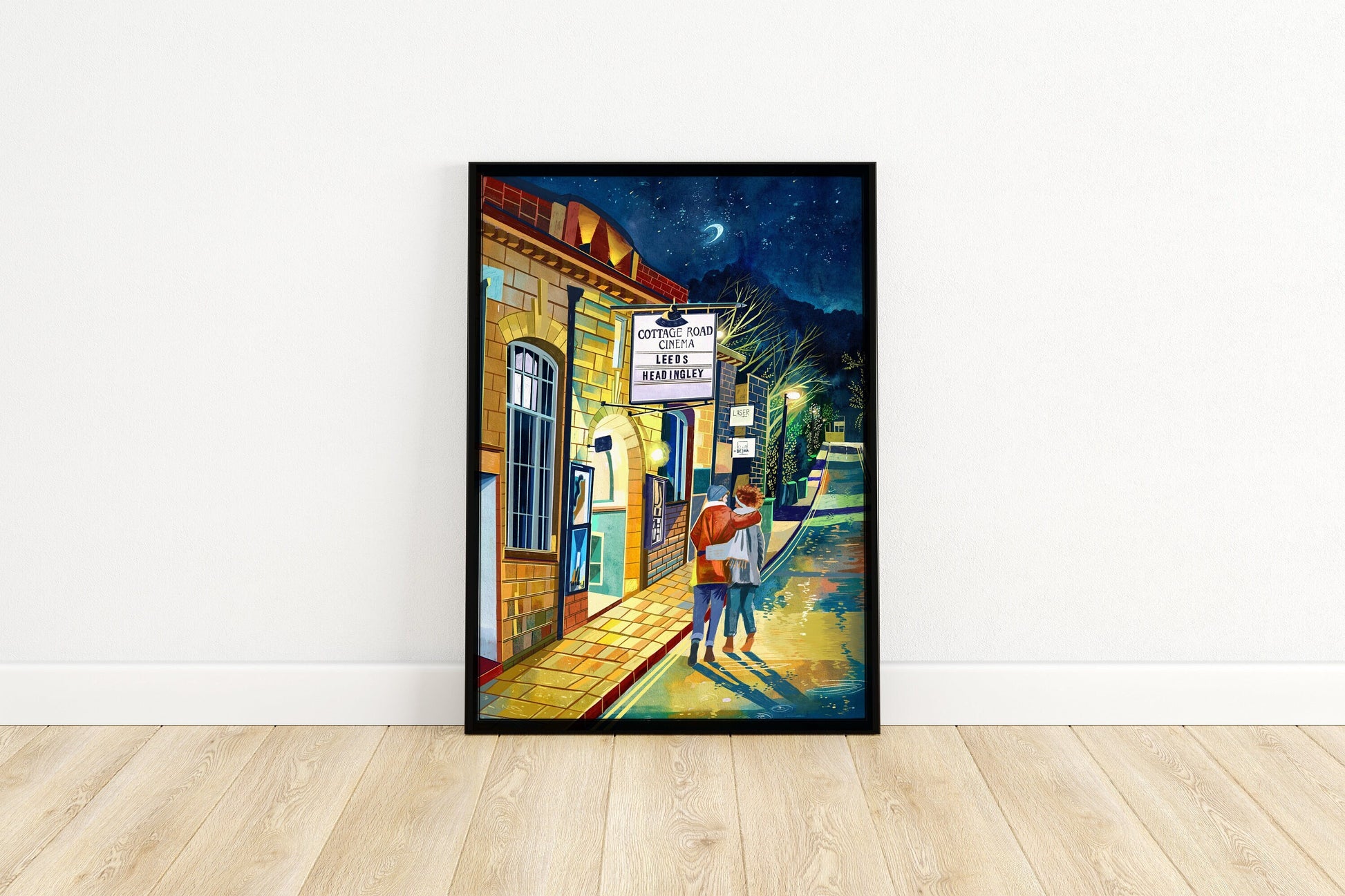 Leeds, Cottage Road Cinema in Headingley. This iconic independent cinema remains the oldest continuously running cinema in Leeds, playing films since 1912. Its wonderfully old fashioned setting gives visitors a historical atmosphere that’s been repurposed for a modern audience. This unique illustrated created by a Headingley based artist makes a perfect gift or self treat for any cinema lover, history buff or simply as a special memento of your visit.