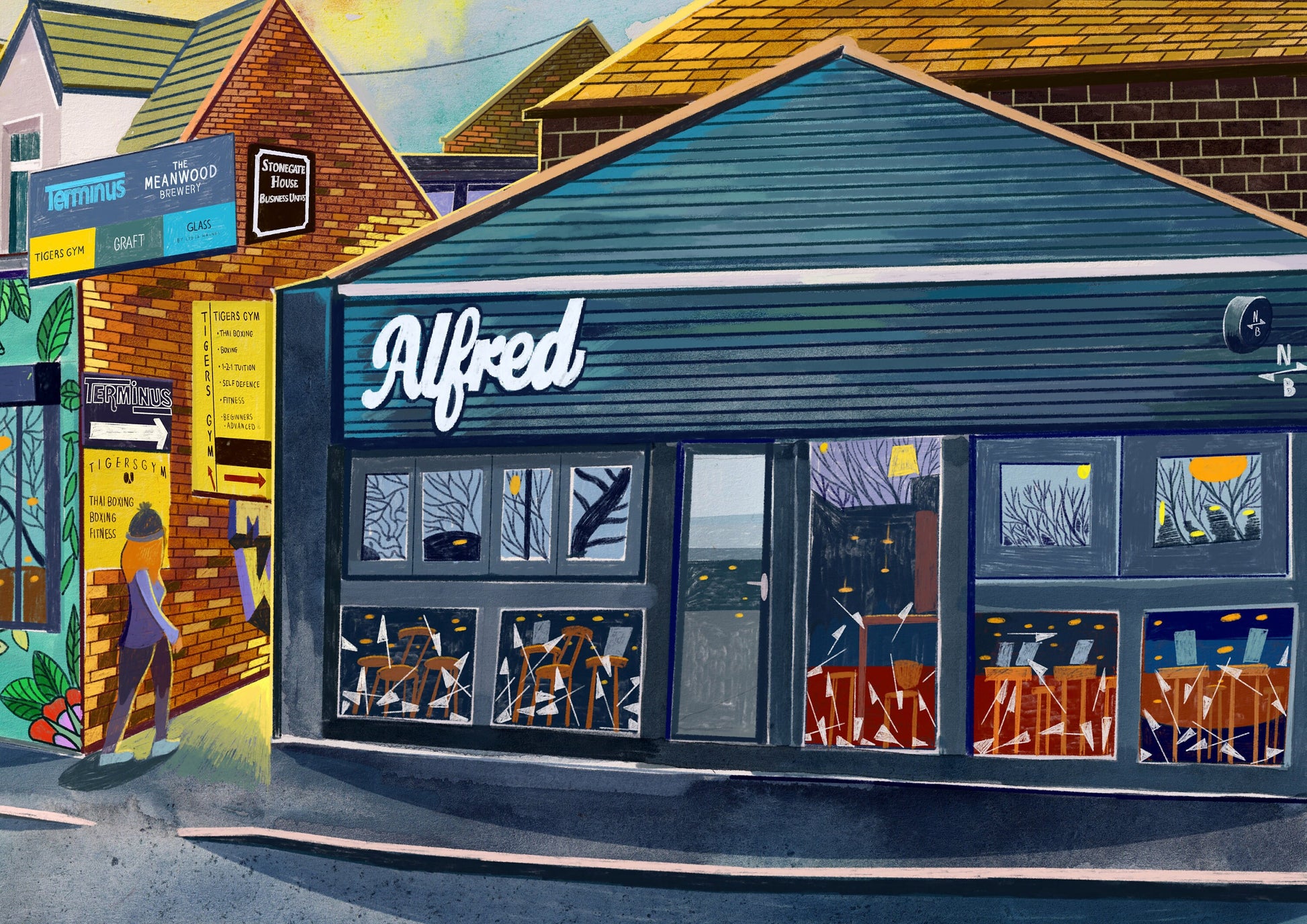 Meanwood Alfred Bar Artwork Print, Stonegate Road, Yorkshire, Leeds Art Print, Leeds Poster, Meanwood Painting, Leeds Gift