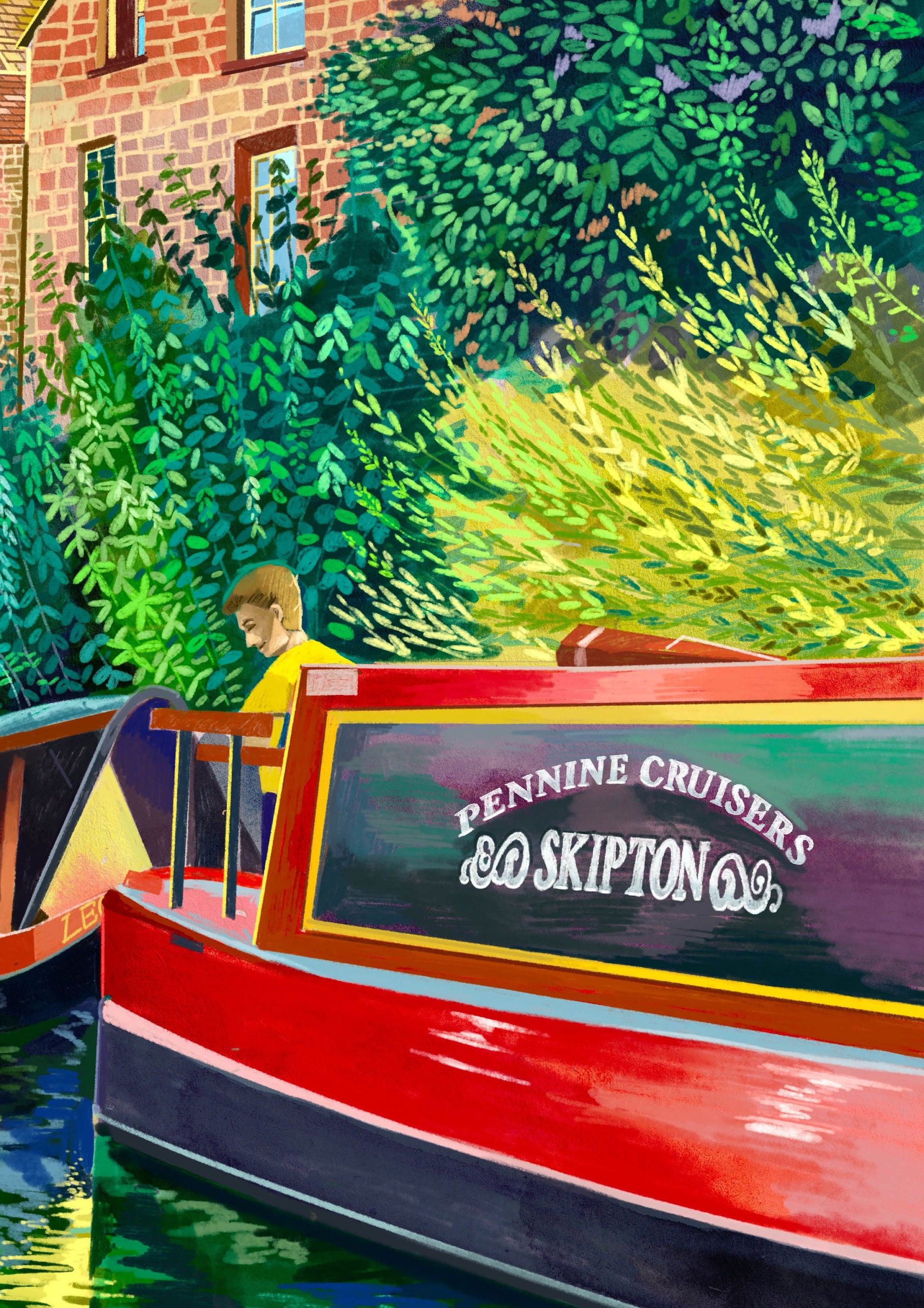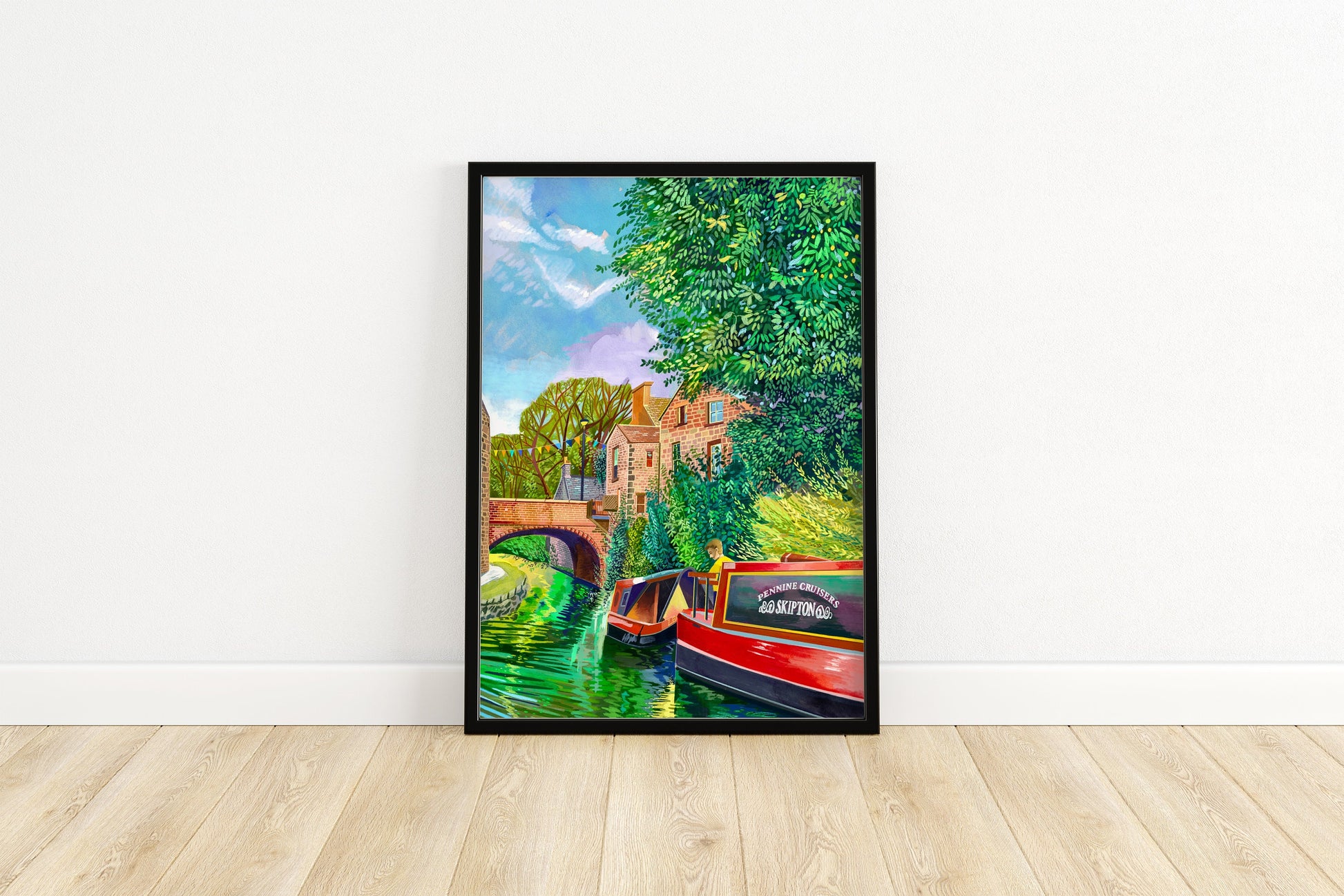 Skipton Artwork Print, Mill Bridge, Skipton Illustration, Yorkshire Dales Artwork, Leeds and Liverpool Canal Art