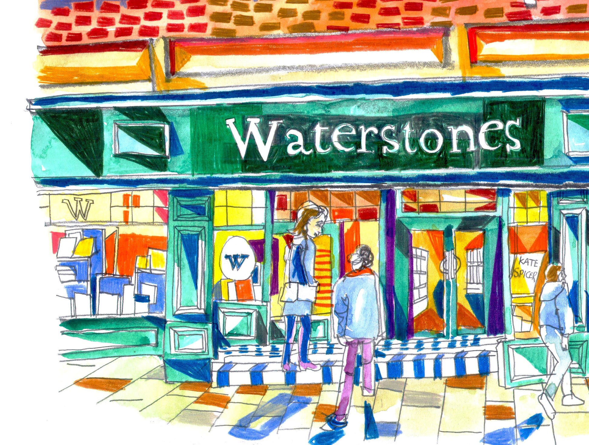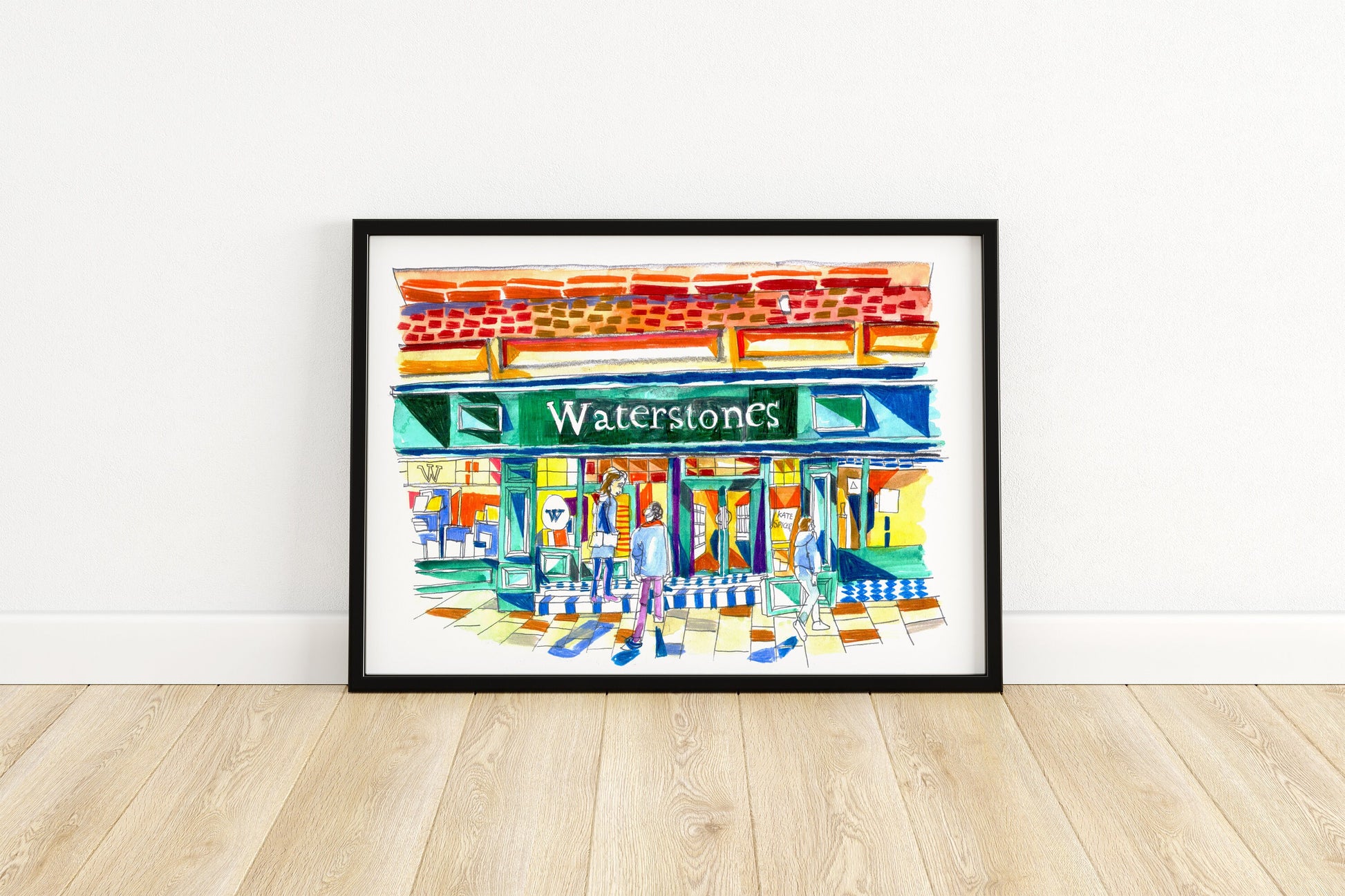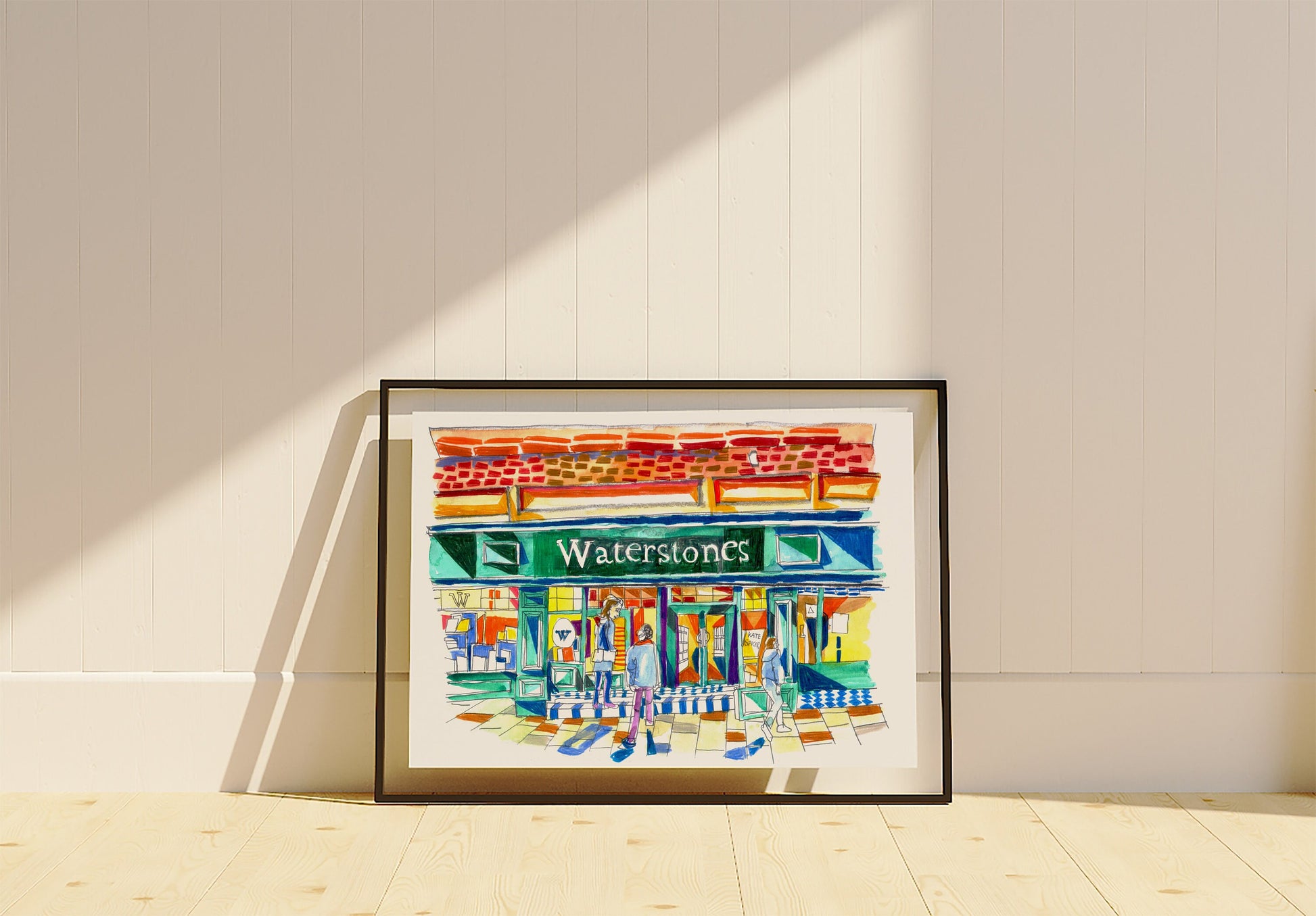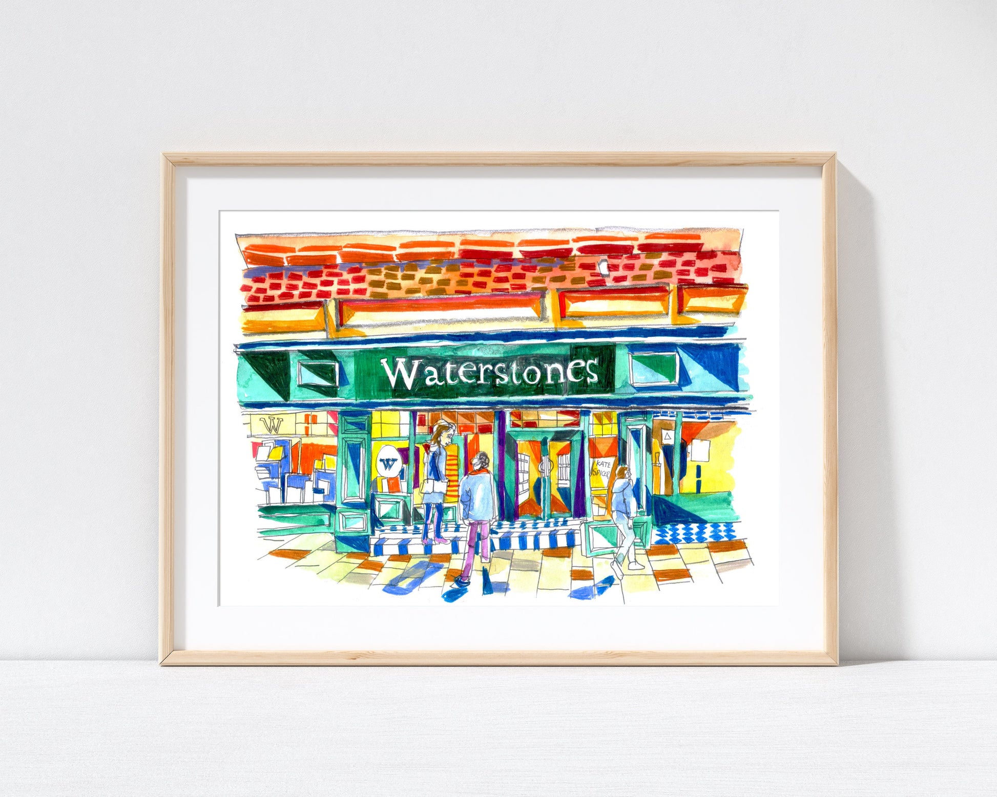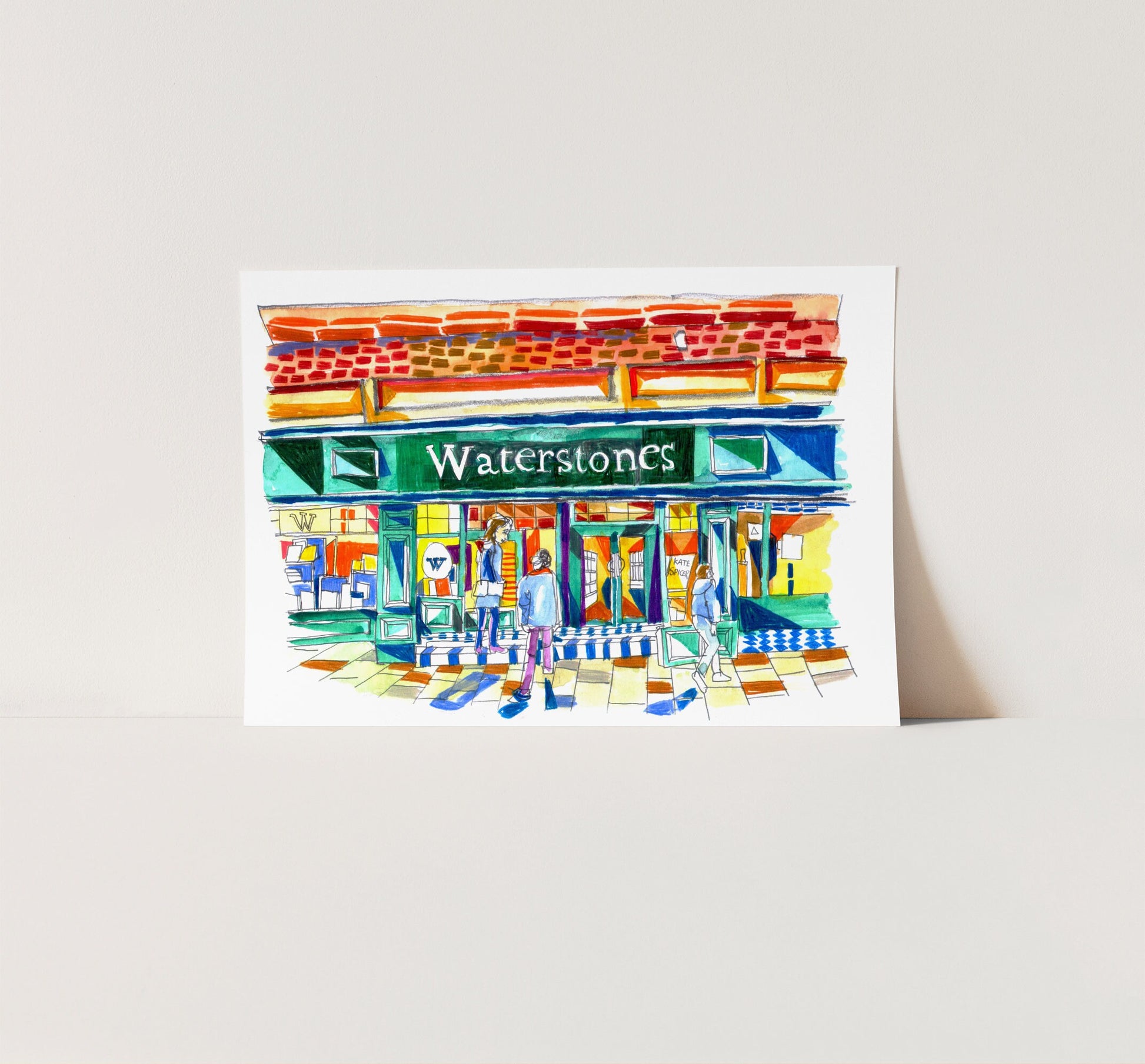 Waterstones Leeds Artwork Print, Bookshop, Café, Watercolour Print